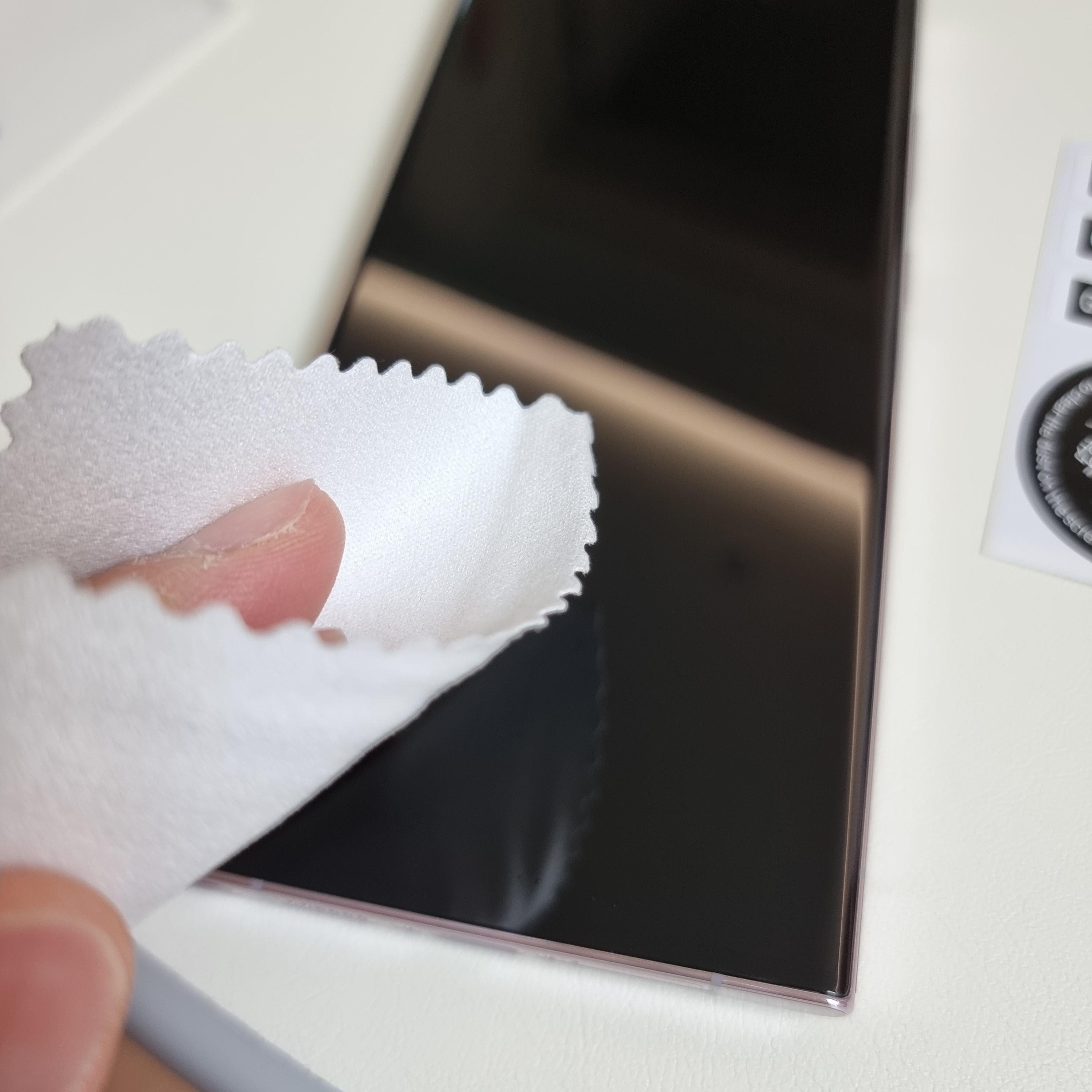 2. 클리너 천을 이용하여 한 번 더 스마트폰 액정을 닦아서 깨끗하게 유지해 줍니다.