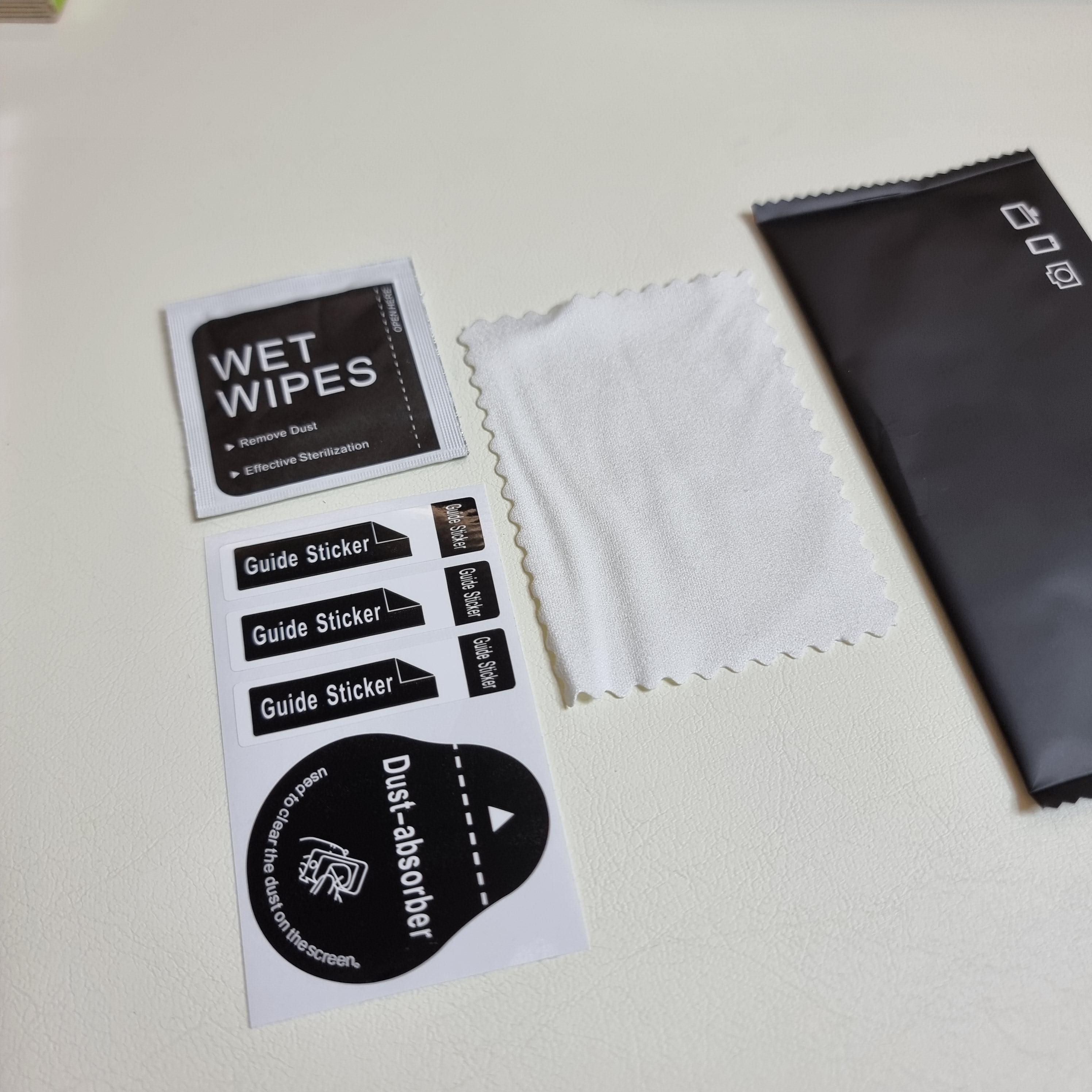 신지모루 갤럭시 S23 울트라 보호필름 구성품에는 보호필름 3장, WET 클리너 3개, 클리너 천 3개, 먼지제거 스티커 3장, 슬라이더 1개 이렇게 구성되어 있답니다.
