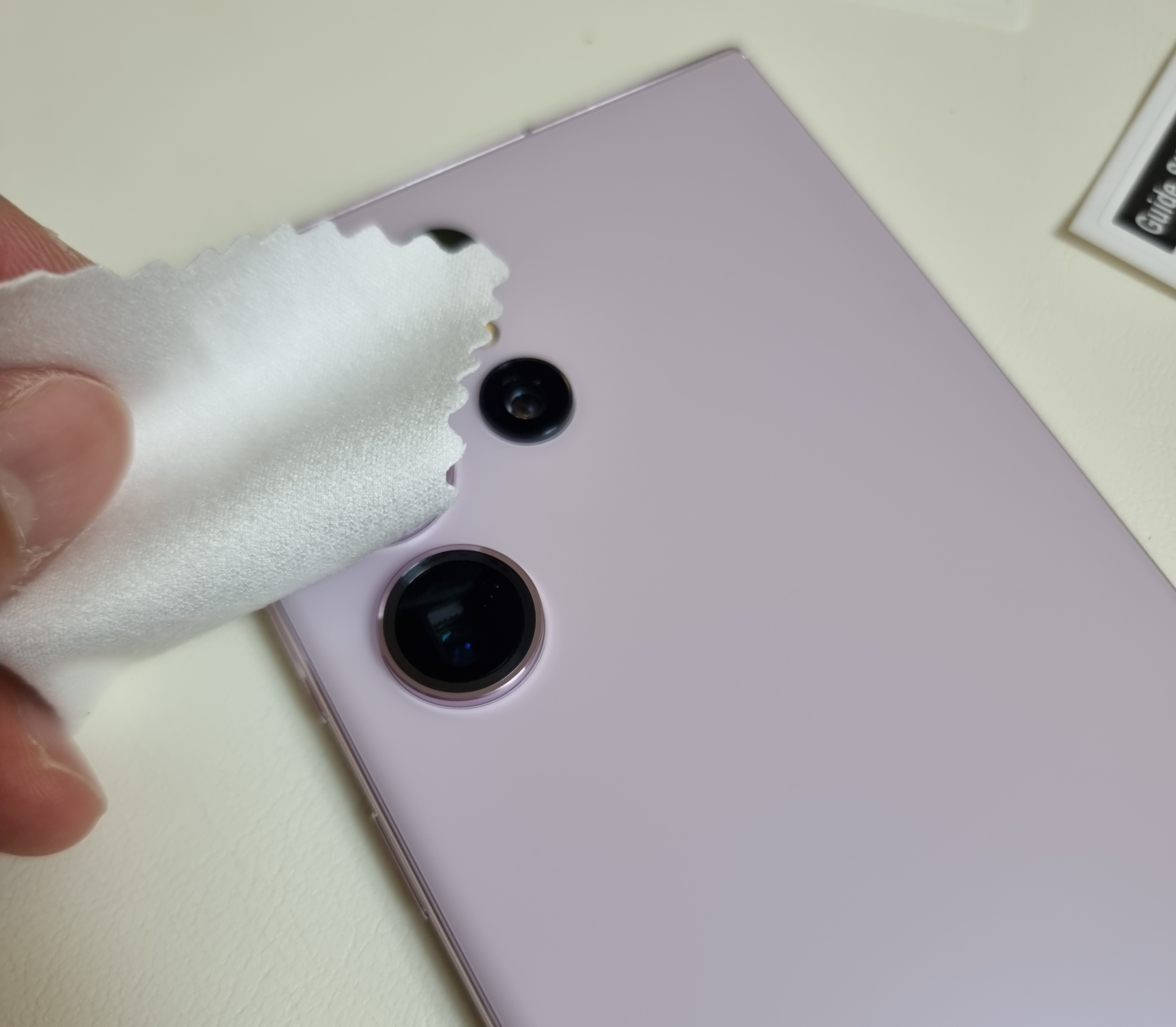 1. WET 클리너로 스마트폰 후면 렌즈 부분과 렌즈 주변을 깨끗하게 닦아줍니다.