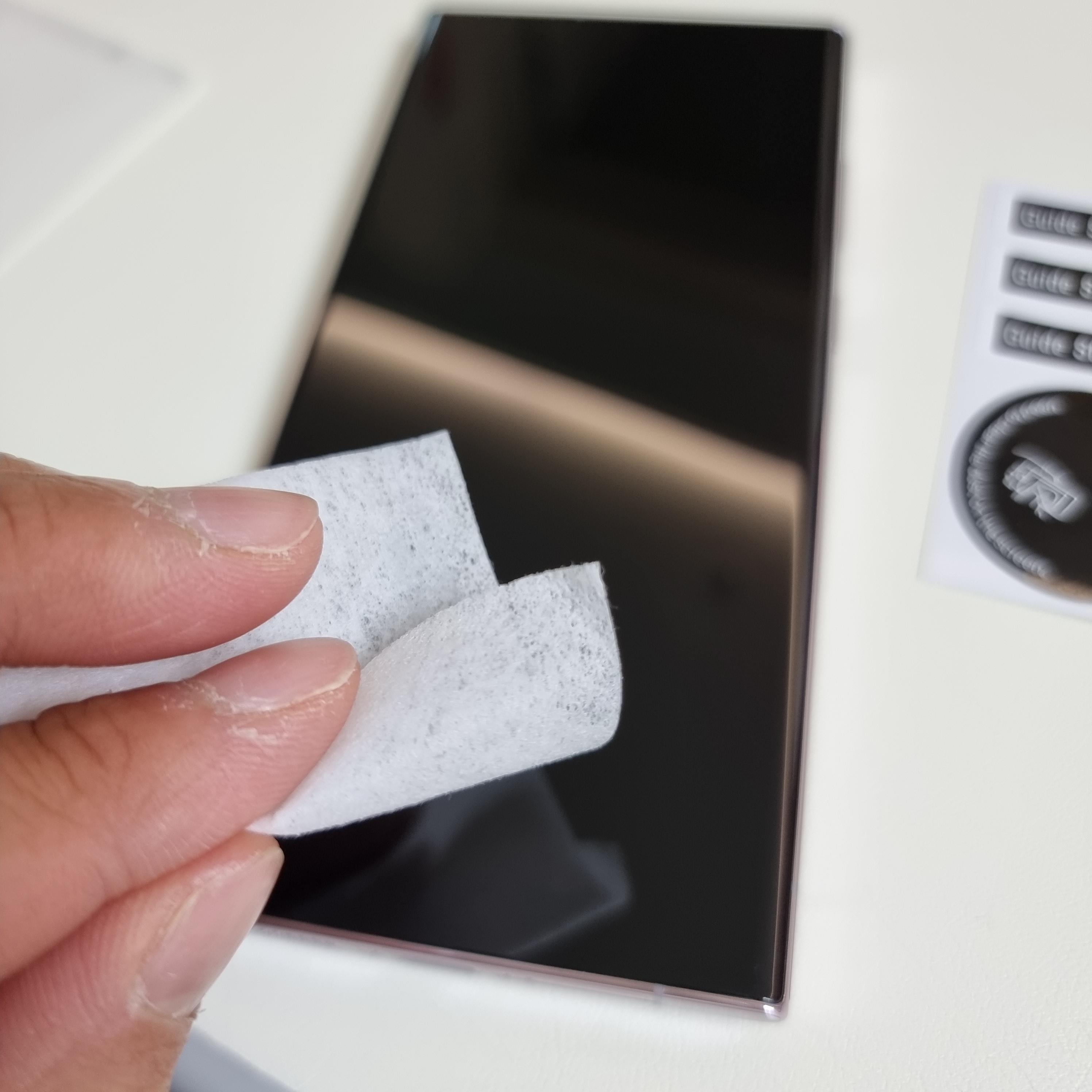 2. 클리너 천을 이용하여 한 번 더 스마트폰 액정을 닦아서 깨끗하게 유지해 줍니다.